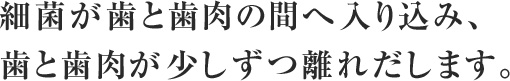しかし、歯周病が進行すると歯周組織が破壊されてしまい、プラークや歯石が付着しやすくなり歯周ポケットもできてしまうため、歯を抜く原因になってしまいます。