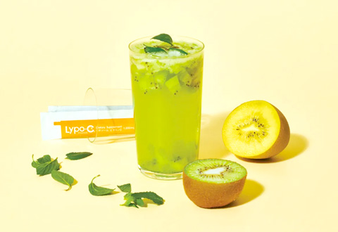 体にこもった熱を冷ましてくれる緑茶、キウイ配合で、夏バテ対策に効果的なドリンク。