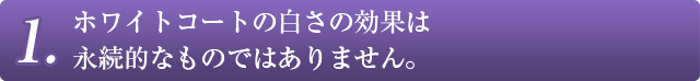 ホワイトコートによる歯の白さは、治療後永久に続くものではなく、白さが続く期間に個人差がありますが